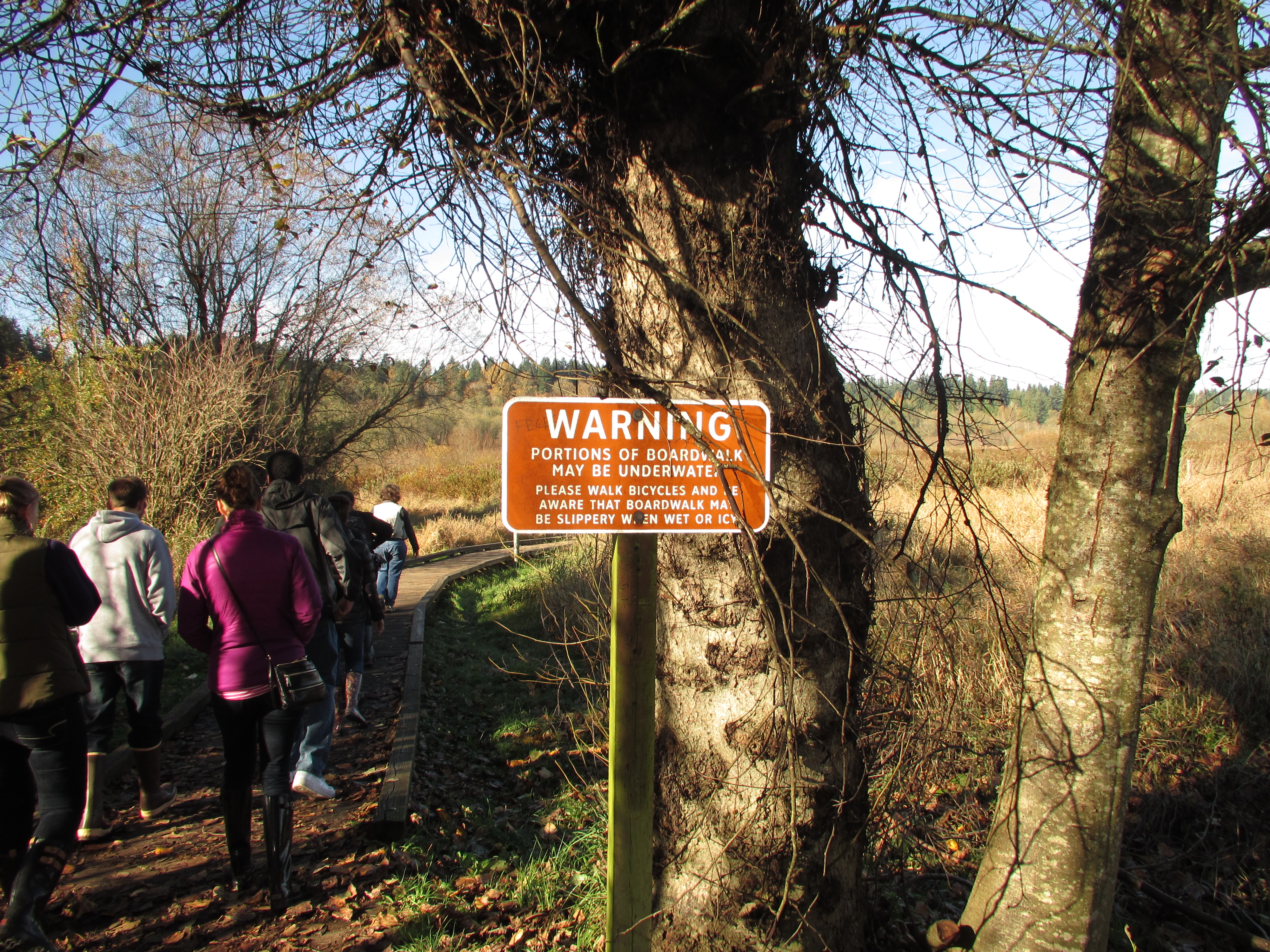 It is a tremendous challenge keeping a balance between humans and nature. After all – humans are a vital part of nature. Last Saturday our class took a lovely walk on a boardwalk that is part of North Creek Park. I have to say it was very interesting as parts of the boardwalk had several inches of standing water from overflow of the wetland.