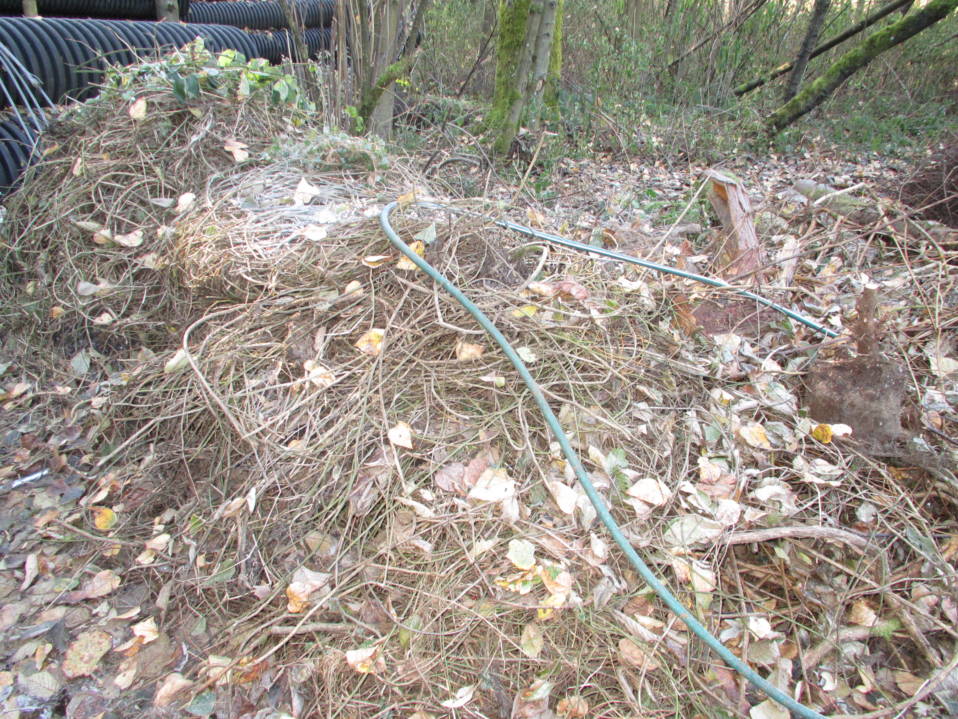 Marian is a UW Bothell Alum who volunteers 20 to 40 hours a week at the NW Stream Center. Her passion for this project is evidenced by the way she looks at each and every twig in the wetland. Marian has names for tree stumps and other areas the same way we have names for pets. Even though she had four willing and able volunteers, she first spent a great deal of time getting to know us and asking about our educational goals. Before she put us to work – she gave us a tour of the project pointing out various aspects of the project explaining that fallen trees and brush piles provide important habitat for small animals; and how a small water area near a dead tree might provide a good habitat for frogs.